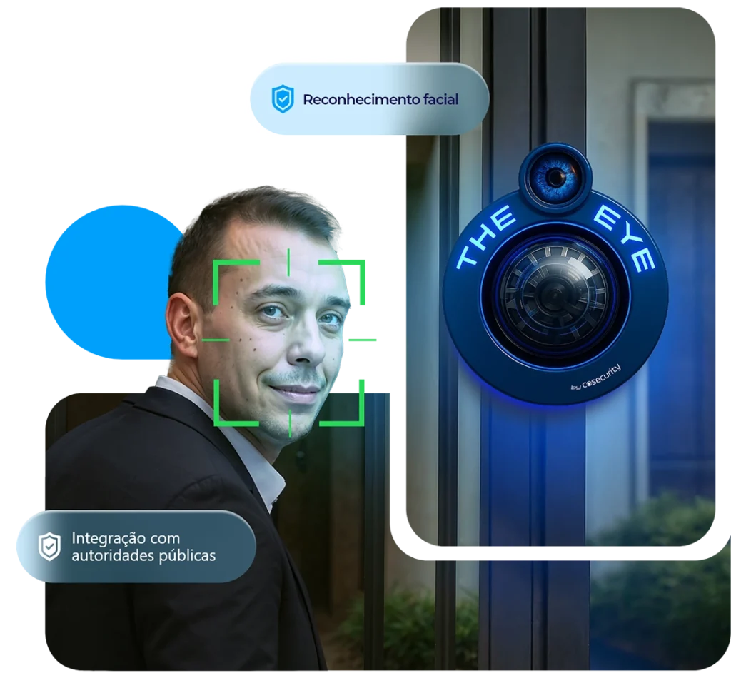 O reconhecimento facial do The Eye identifica suspeitos e monitora seu condomínio contra acessos indesejados em tempo real.